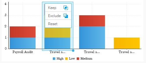 A Report Writer previously linked chart brushing to the dashboard so you can easily filter both charts on the dashboard. The Report Writer enabled chart brushing on the Issue Severity by Project Stacked Bar Chart.